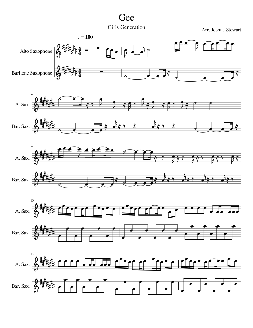 Gee Girls Generation Sheet Music For Saxophone Alto Saxophone Baritone Woodwind Duet Musescore Com